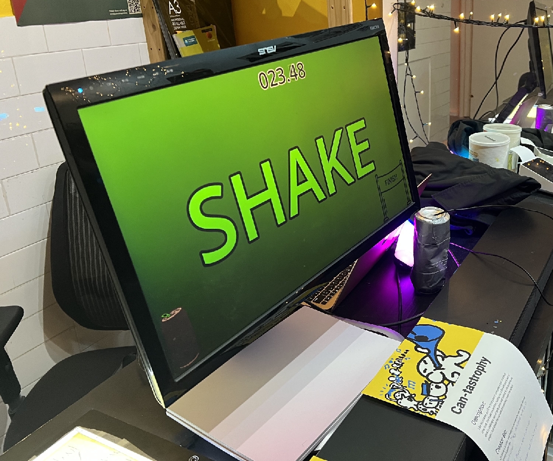 got to participate in an IRL game showcase... showed off two games - a peripheral game where you use a can filled with a microcontroller to complete microgames, and a fairy raising sim.